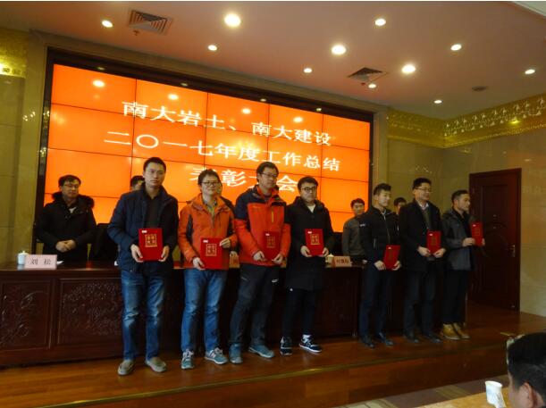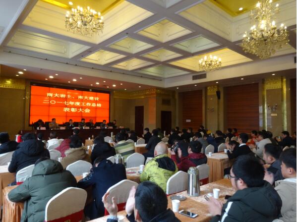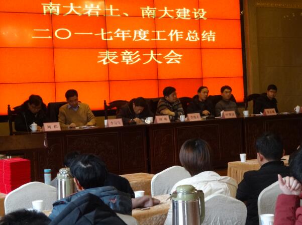 南大巖土、南大建設于2018年2月10日上午9:00在南京市華江飯店民國樓V288會議室召開了2017年度總結表彰大會。公司高層領導李俊才,葉繼權,尚明,張志鋮,李友生出席了會議,大會由公司副總經理張志鋮主持。